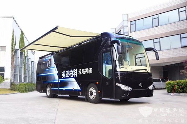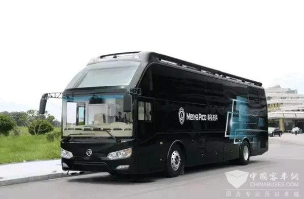 虎鲸二号全景一身黑衣,“金旅”盘底,完美线条,除了车身上“美亚柏科”的大字logo,这辆低调的大车外表上与普通豪华客车似乎并无二致,但对于底盘可靠性、安全性的要求堪称苛刻。