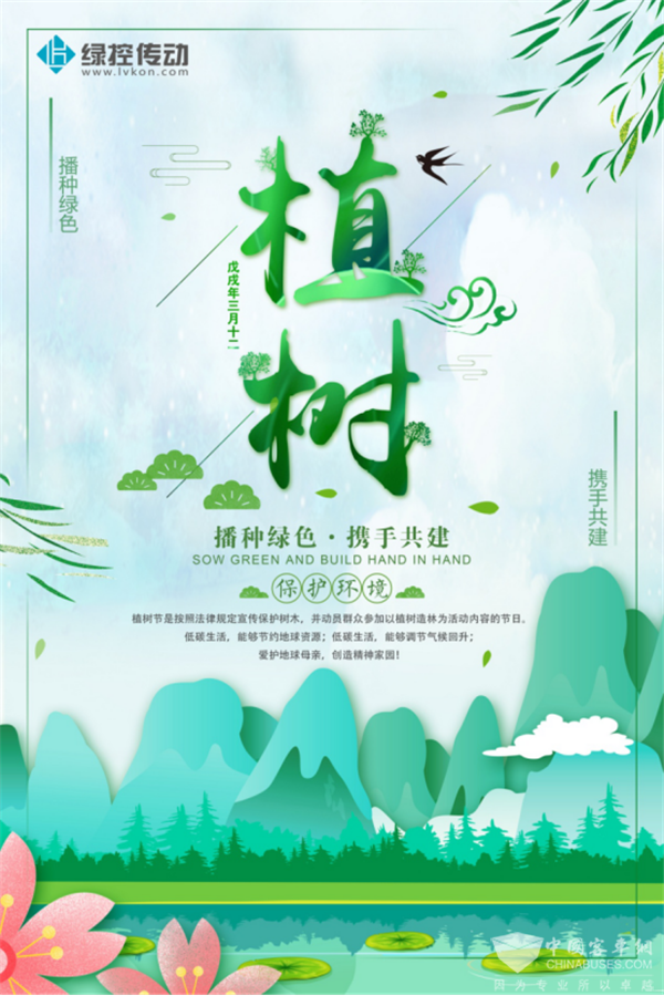 其实,由于地区和气候差异,在中国北方的大多数地方,这个时间是不太适合植树的;又或者,你虽然生活在南国,但因为工作紧张,没有时间和条件去郊外种树,那么,用其他的行动去代替吧:这一天不要开车了,去乘坐一次新能源公交车吧,代替你为国家种下一颗小树苗。