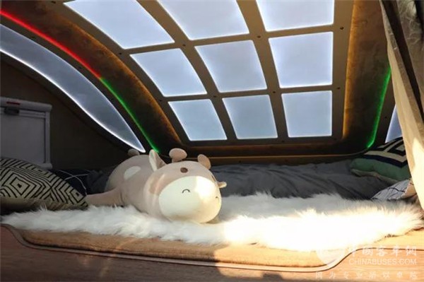 车内空间宽敞,设置有额头床、客厅、厨房、卫生间、后置卧室等区域,且拥有丰富的生活设施配置,现代品质生活感更强。