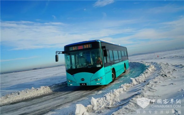 测试过程中,工程师团队设置了多个试验项目,得益于独创的动力电池热管理系统等领先科技,不论是低温环境下的冷启动、车内空调制热、车辆耐久性、动力续航、充电系统,还是冰雪路面等各种路况的安全稳定行驶性能,比亚迪纯电动客车均表现出色,高寒适应性能突出,完全满足北方冬季市场全工况复杂路面需求。