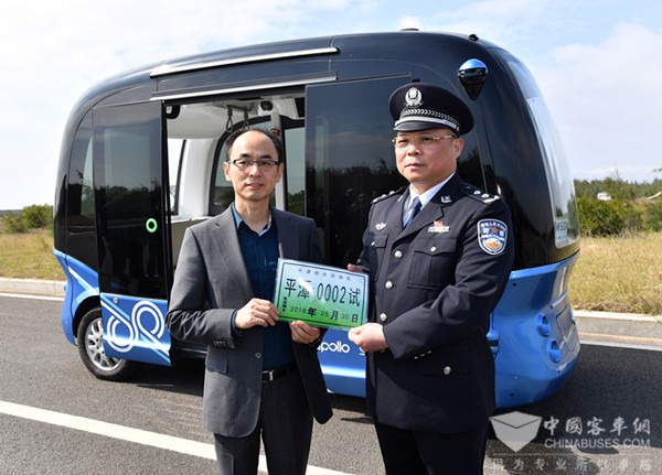 2018年3月30日,福建平潭综合实验区公安交通管理部门分别授予金龙客车、百度公司首批6张测试牌照(各3张),这是全国首次面向无方向盘的无人驾驶汽车发放测试牌照,并由百度公司和金龙客车合作生产的全国首辆商用级无人驾驶巴士——阿波龙,率先在平潭无人驾驶汽车测试基地现场进行测试。