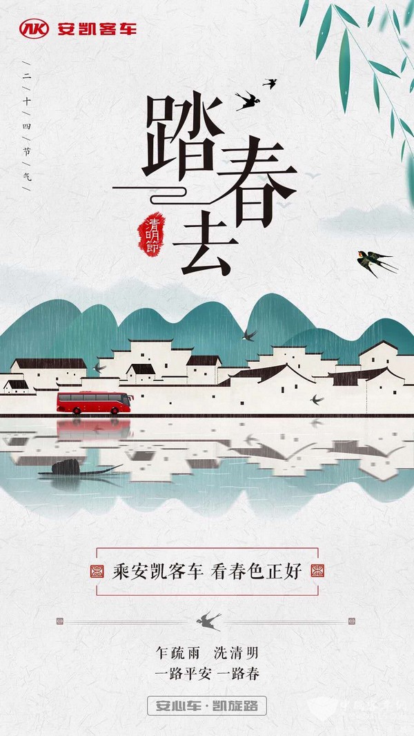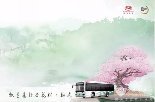 比亚迪客车的清明海报是古风水墨画的杜牧千古名篇《清明》全诗。