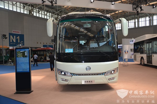 本次展出的新凯歌,作为经典凯歌的全新升级车型,通过造型、设计、工艺等全方位的提升,成为金旅客车布局客运、旅游、通勤大巴市场的新一代战略重点车型,具有高收益、低油耗、安全领先和舒适升级等特点,是金旅客车集卓越设计、先进科技和优良制造工艺的完美之作。