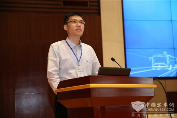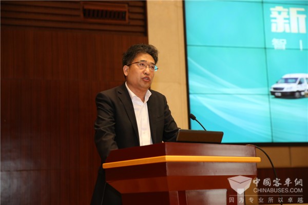 海格客车副总工程师严则进介绍“客运转型旅游用车整体解决方案”