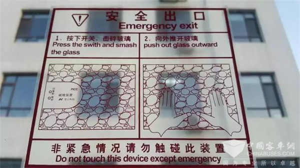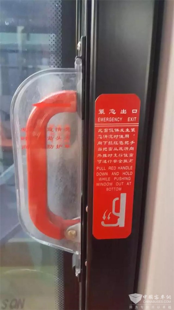 亮点四:配置4个外推式逃生通道,紧急情况下能迅速逃生。这是在车厢内配备了安全锤、自动破玻器的基础上的又一安全设施。
