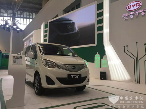 本次展会上,比亚迪展示的T3纯电动物流车采用MPV设计,车长约4.5米,载重0.8吨以上,货舱空间达3.5立方米。T3搭载比亚迪自主研发的铁电池,动力强劲、品质可靠,续航里程达250公里,可有效解决物流行业“最后一公里”运输难题。