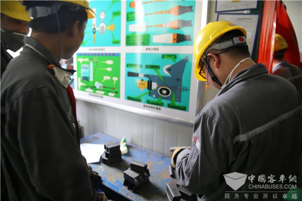 记得2017年,在生产任务最紧的时候,他们又接到三种新车型的任务,这无疑对紧张的生产任务是“雪上加霜”。18米纯电动欧洲展车,就是一个“硬骨头”。这款车舱门数量较以往增加了4个,新增舱门安装需要3个人同时作业,耗时114分钟,这样的新工艺,影响了整条生产线的节拍。