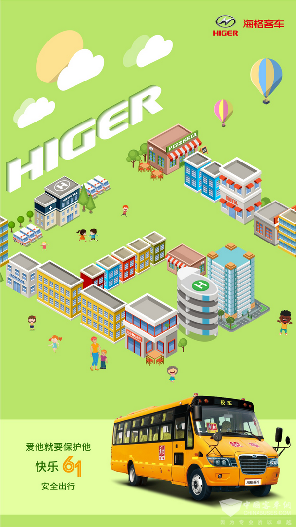 海格也在这个节日里,力推自家的校车。在海格看来,快乐六一,就是要安全出行,“爱他就要保护他”。