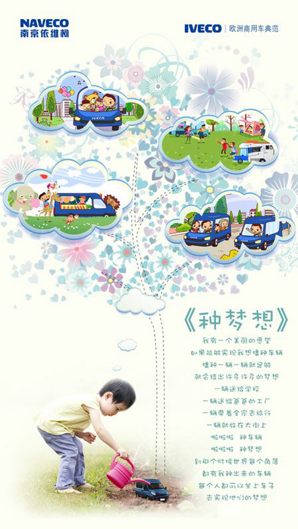 南京依维柯把所有的愿望都“种梦想”:一辆送给学校、一辆送给爸爸的工厂、一辆带着全家去旅行,一辆就放在大街上……