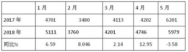 根据海关数据,2018年5月客车出口5897辆,同比(2017年5月客车出口6201辆)下降3.58%.,现将2018年5月客车出口市场简析之。
