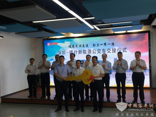 2018年6月27日,“促进民族交流、助力一带一路,深圳—喀什市新能源公交车交车仪式”在喀什深圳城举行,首批16辆比亚迪纯电动公交车由深圳市对口支援新疆工作前方指挥部交付给喀什市公共交通有限责任公司。作为全球首个公交全面电动化城市,深圳市坚决落实中央打赢脱贫攻坚战的决策部署,以受援地对绿色公交的需求为导向,通过推进公交电动化,保护喀什生态环境、促进旅游业发展、改善民生福祉、促进民族交流。