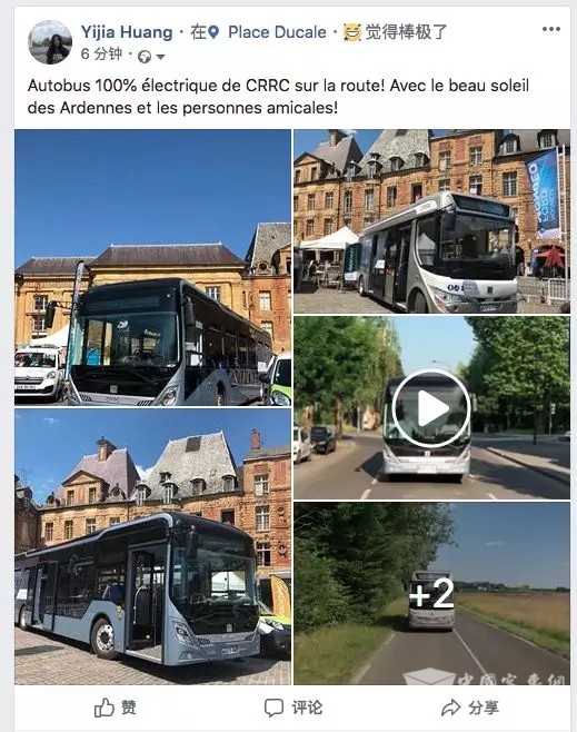 2018年7月3日,小编在Facebook上看到一名中国留学生在法国路遇“中国中车”纯电动巴士,这让她顿生一种自豪感,于是追着车跑了一阵就像偶遇“姆巴佩”一样兴奋。其实,中车电动纯电动巴士早就在法国的大街上穿梭啦!