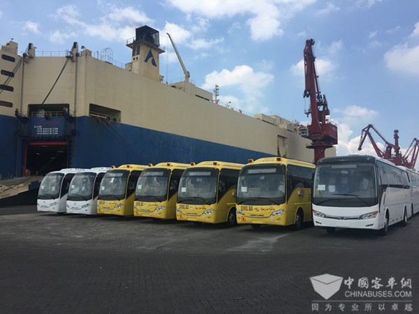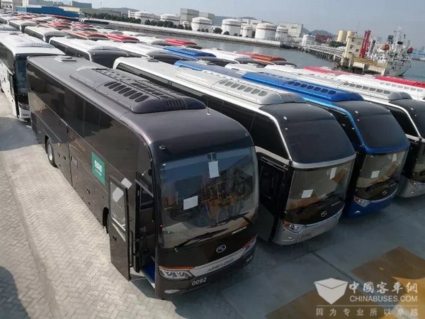 就在中阿盛会召开之际,7月13日,在厦门港,总计82辆金龙客车即将装船,将发往阿联酋、科威特、巴林等地。