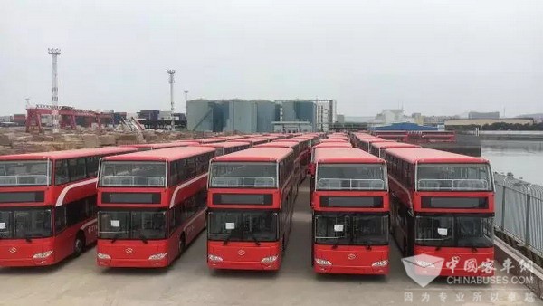 在科威特,“中国红”的双层巴士为当地公共交通注入生机与活力。今年春节期间,56辆“身着”中国红的金龙客车双层巴士,喜气洋洋地从厦门港启航远赴科威特,这是中国双层巴士首次批量出口科威特。上半年共有120辆品质精良、运力强劲的金龙红色双层公交车进驻科威特,极大地支持当地公交系统的完善与建设。