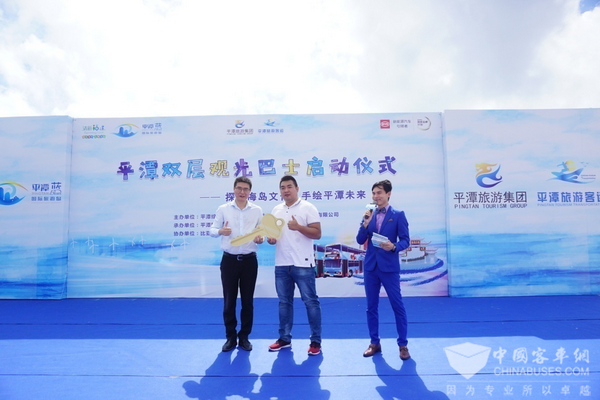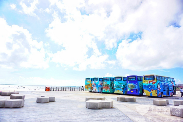 2018年7月20日,“平潭双层巴士启动仪式——探索海岛文化·手绘平潭未来”在福建平潭综合实验区海渔广场举行。首批6台兼具低碳环保和人文情怀的比亚迪K8S纯电动双层大巴作为“环岛游”观光巴士正式交付平潭综合实验区旅游客运有限责任公司运营,打造平潭国际旅游岛新符号。此举不仅可改善当地交通环境与出行条件,实现旅游业与绿色交通运输的融合发展,同时,也可进一步加强海岛生态建设,助力平潭构建人居环境优美、生态环境良性循环的新兴海岛城市,推动平潭旅游跨越式发展。