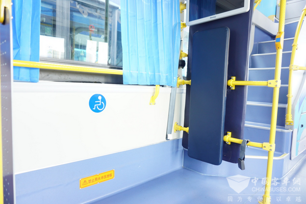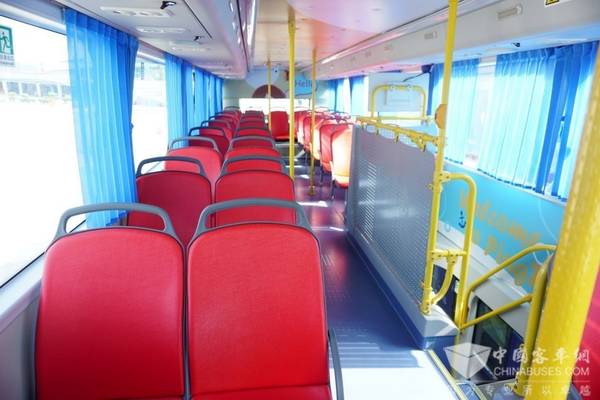 如此高颜值的旅游观光巴士,除了“双层”这一特殊身份外,更独具人文关怀。在座椅方面,双层巴士皆采用皮质座椅,提高了乘坐的舒适性,并配备轮椅导板,给特殊的游客提供便利。整车匹配后置式超大制冷量空调,并增加驾驶区独立小空调,即便炎炎烈日,也能够满足上下层乘客及司机对空调的需求。