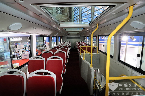 开沃G10纯电动巴士集颜值与科技于一体,以热情的“中国红”为主色调,车身造型新颖、时尚、具有现代科技感。在满足城市车辆车速低、载客量大的需求上,还与现代化城市建设相协调,在方基调上增加曲面流线型效果,造型总体设计符合国际化大都市要求,是城市流动景观的形象元素。为了让乘客享受舒适的乘车环境,全车采用了多项人性化实用设计。不仅有大幅观景窗及顶部全景天窗的设计,保证透光性的同时让市民能够欣赏到沿途的景色。为提高差异化优势,提升乘客体验,开沃G10还加装了8种语言翻译装置,更大程度适应观光旅游线路需求。同时,车辆还专设残疾人乘车区和无障碍乘坐设施,满足更多市民的乘车需求。