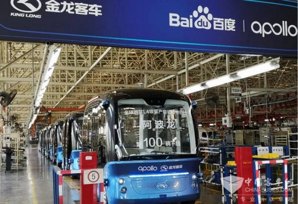 2018年7月4日,在百度AI开发者大会上,李彦宏宣布:百度和金龙客车合作的全球首款L4级量产自动驾驶巴士阿波龙正式量产下线。
