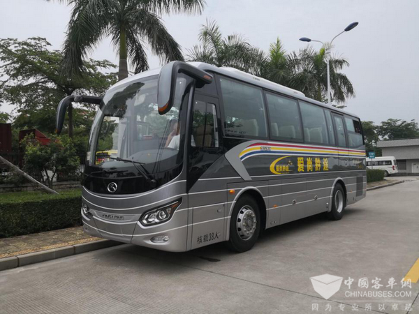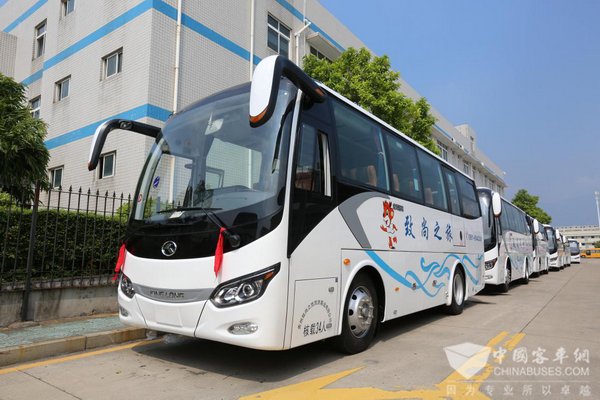 本批交付的金龙捷冠3S车型是中巴的匠心之作、价值典范。外观上传承捷冠家族中巴一贯的优美体形,配合降低风阻流线型车身设计,自然为景。轿车级内饰设计,优化座椅布置,整体式成型顶设计,L型空气悬架,乘坐更加舒适;3H全承载车身结构、自主研发的L型悬架系统、高达1.0Mpa的制动压力、TPMS胎压监测系统和防爆胎装置等;采用行业优选高排量、高扭矩动力配置,缩短加速时间,提高爬坡度;智能冷却技术、KING-POWER智能动力链和金龙智慧云服务平台节能应用,让动力非凡的同时,节能更出众,为客户创造更多营运价值。