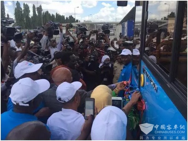 2015年,在坦桑尼亚首都达累斯萨拉姆,当地政府为了解决首都地区拥挤的公共交通环境,启动了名为DART的BRT项目,希望通过加强城市基础设施的建设来改善民众的出行条件。在全球招标的舞台上,金旅最终击败了欧洲、美洲等诸多国际知名品牌,成为该项目首批138台BRT公交的唯一生产企业。这个项目也成为该国历史上第一条BRT线路,改变了坦桑尼亚的交通运输格局。目前,金旅共有三批次共计215台公交服务于DART项目,金旅的蓝色公交不仅改善了当地公共交通,也成为人们生活中不可或缺的部分。