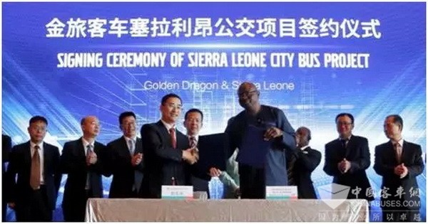 2018年8月30日,金旅与塞拉利昂签署了200台客车的项目协议。此项目为塞拉利昂政府采购项目,为改善民生与交通,塞拉利昂交通部采购200辆金旅公交车及城际客车投放首都弗里敦及周边地区。金旅凭借优质的产品以及多年在非洲为客户提供专业的服务,获得了塞拉利昂政府的青睐。