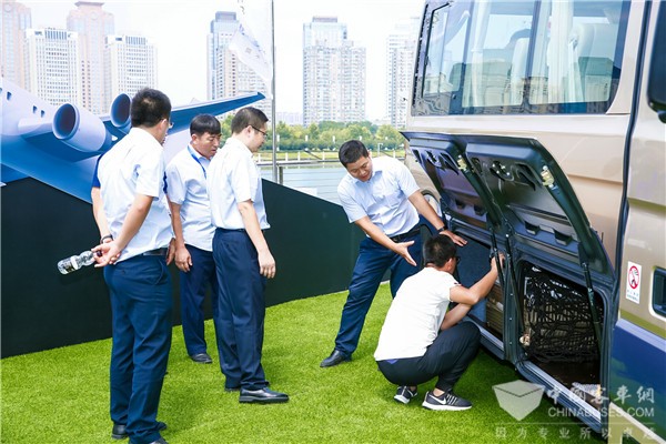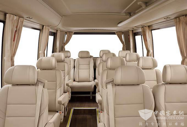 “空间大是CL6区别其他的产品的第一大特征。”刘英才介绍,CL6发动机置于客舱外部,同时整车加宽、加高、车内空间最大化,乘坐体验更舒适;通行空间大,相较传统轻客车身加宽18cm,加高13cm,车内高1910cm,身材高大的旅客也能在车厢内轻松通过;座椅间距大,采用宽体商务座椅,宽度47cm,相比传统座椅宽了5cm,前后座椅间距大,13+1布局前后座椅间距75cm。
