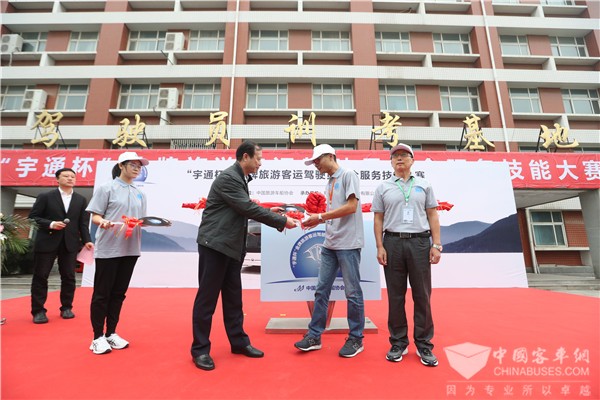 中国旅游车船协会副会长黄伟建颁发比赛启动钥匙