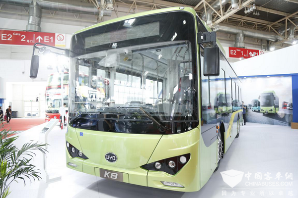 2018年6月,比亚迪推出了集多项核心科技于一体的的新款K8。2018款K8长10.5米,座位数可达34个。在整车结构上,新款K8延续了全铝合金车身、高强钢车架以及多合一控制器等设计,通过高度集成、一体控制,实现了整车重量的减轻、布局的优化。