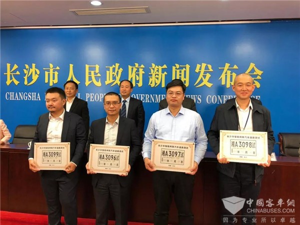 2018年10月26日,长沙市政府重磅发布长沙首批智能网联汽车开放道路测试号牌,并同时公布长沙首期开放道路测试路段。中车电动12米智能驾驶客车顺利获得号牌并成为全国第一个获得智能网联汽车开放道路测试号牌的自动驾驶公交车。