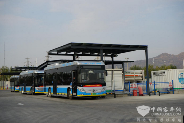 运行在加氢站的福田欧辉氢燃料电池公交车