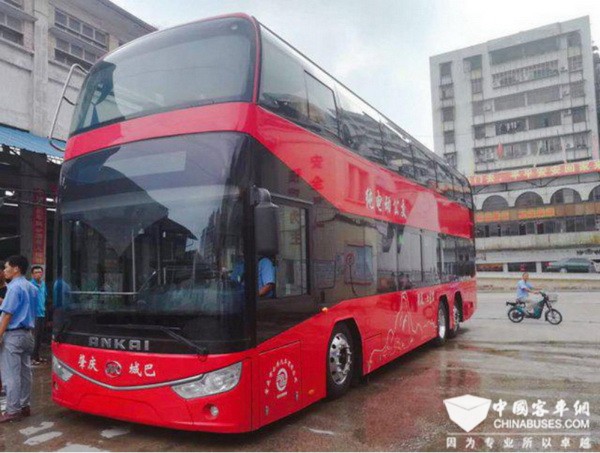 2018年8月3日,4台安凯纯电动双层观光巴士的亮相吸引了肇庆市民极大关注。因“双层观光巴士”刷爆朋友圈的广东肇庆终于正式迎来了这批“明星”车型。从“双层观光巴士投运”消息的确定,到征集运行路线,再到纯电动双层观光巴士“真容”的曝光,以及最终游览路线的出炉……这款此前刷爆朋友圈和贴吧的“网红”车型终于落户肇庆“最美”公交线路,将作为绿色出行“零排放”的代表大大提升肇庆城市的形象和美誉度。