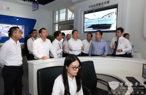 李小鹏十分关心金龙客车的技术创新情况,他仔细聆听了金龙智能网联技术介绍,饶有兴趣地观摩了金龙智慧云服务平台演示,对金龙龙翼车联网的大数据、云计算和人工智能技术表示赞赏。