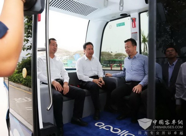 金龙客车深入贯彻习近平总书记关于“发展是第一要务,人才是第一资源,创新是第一动力”的指示要求,始终坚持创新驱动,不断掌握核心技术,打造拳头产品,开发的金龙阿波龙作为中国首款 L4级无人驾驶微循环电动巴士,技术达到国际领先水平。调研中,李小鹏部长亲自体验了试运营的金龙阿波龙,对其性能给予了充分肯定。他指出,中央高度重视人工智能的发展。在人工智能和传统产业深度融合方面,金龙客车做了先行者。他希望金龙客车进一步深入贯彻习总书记关于发展人工智能的指示精神,继续坚持创新驱动,不断研究探索,为交通运输提供无人驾驶解决方案,为加快发展智能交通、建设交通强国做更大贡献。他表示,下一步将在智能交通示范区建设、政策法规制定、产品推广等方面支持企业发展。