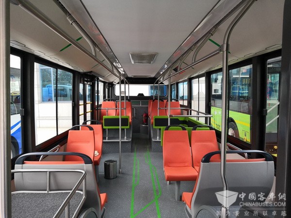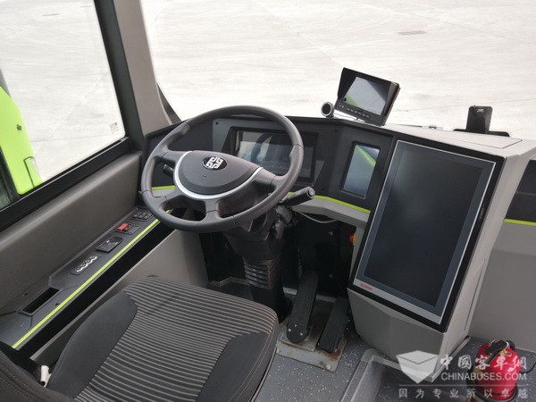 据悉,中通客车太阳能增程智能驾驶客车历经近两年的设计、研发和验证。其采用轮边电机驱动、自主VCU等先进动力系统,驾驶区实现全液晶组合仪表、超大中控大屏、液晶后视镜等数字化控制,车内采用全新的布局设计和变幻灯光渲染。