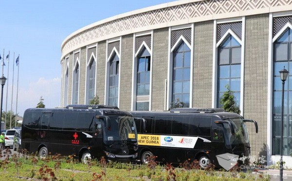 本批车辆共85辆,包括50辆白色公交车和35辆黑色团体客车,从11月12日开始就已全部投入使用,为参会各国代表团、工作人员在机场、酒店、会场提供通勤服务以及中国驻巴新大使馆用车服务。
