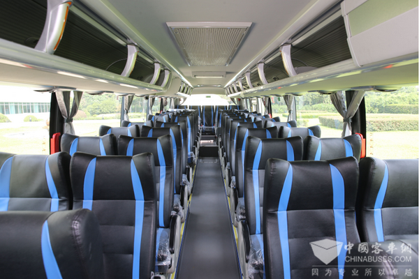 9米海豹系列全系标配全承载车身,采用高制动气压、盘式前桥,有效提升整车安全性能。通过车内空间优化布局,高一级配置与同级别车型相比增加2个座位。车辆大量应用新型环保材料,达到节能减排的效果并提高驾驶性能。