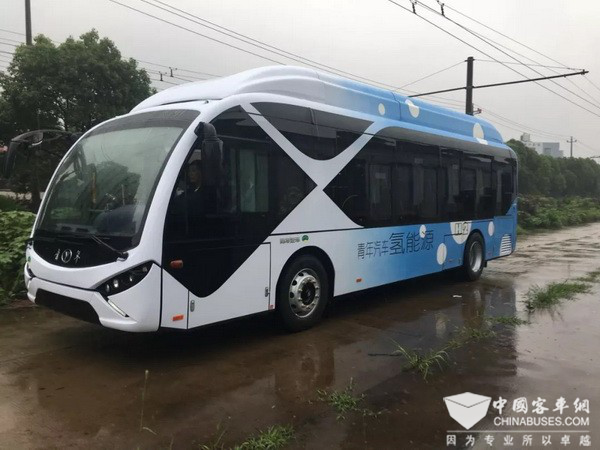 在江苏南通示范运营的青年氢燃料电池客车