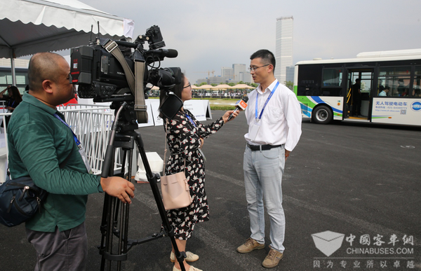 这辆无人驾驶客车长8.5米,一眼看上去无论外观和内饰与平常道路上行驶的中型公共汽车没有太大的区别。车上安全员告诉记者,无差别的原因是该车是基于新能源和自动驾驶正向开发的,已属量产型无人驾驶客车,车上配备的摄像头、激光和毫米波雷达、前后视/前后门高清摄像头、差分GPS等出厂时已与整车整体镶嵌融合,因此从外观上看不出太大的区别。