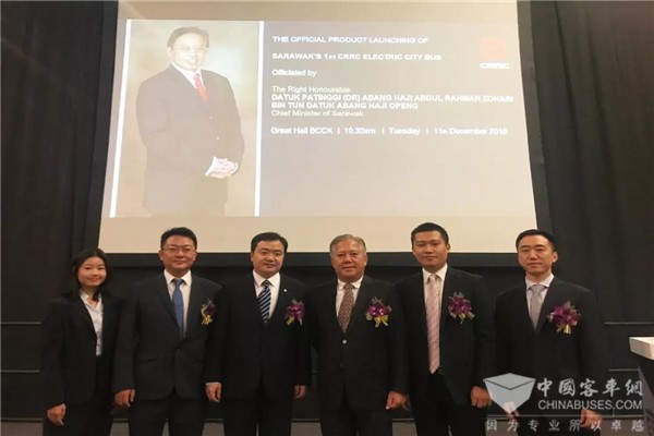 沙捞越领导及嘉宾与浙江中车电车高管一同见证纯电动巴士亮相