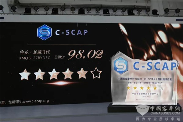 作为金龙客车战略级产品,龙威Ⅱ代采用全过程数字化加模块化平台的开发模式,对标国际一流品牌高端客车,再次开启中国高端客车的新里程,并冲击世界高端制造的塔尖,从某种意义上讲,带动中国制造、智能制造升级。在通过国六B阶段整车型式认证测试之前,龙威II代以行业最高分的耀眼成绩,通过《中国客车安全评价规程》(C-SCAP)测试,荣膺“中国超五星级安全客车”。在行业中率先相继通过安全、节能的严苛考验,证实了龙威II代领航中国客车高端客车的“含金量”,可谓实至名归。