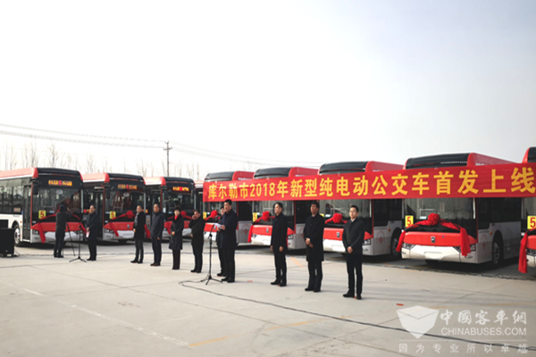 巴州副州长、库尔勒市市委书记董斌代表库尔勒市市党委、市人民政府对新型纯电动公交车首发表示热烈祝贺。董斌表示,新型纯电动公交车上线运营,这既是库尔勒市市党委、市人民政府始终坚持以人民为中心、持续改善民生的具体行动,也是积极响应国家推广新能源汽车战略的具体举措,标志着库尔勒市在改善城市空气质量、建强文明城市、营造绿色家园等生态文明方面又向前迈进了一大步。300辆新型纯电动公交车的启用,对于改善市民出行条件、缓解城市交通压力、提升梨城形象具有十分重要的意义,将为库尔勒市加快城市建设步伐起到积极的推动作用。