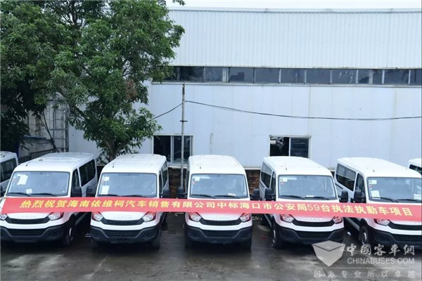 2018年12月26日,海南依维柯成功中标海口市公安局项目,赢得了59台执法执勤车的采购订单。动感时尚、性能可靠的全新一代依维柯·欧胜将为公安事业增添一道亮丽的风景线。