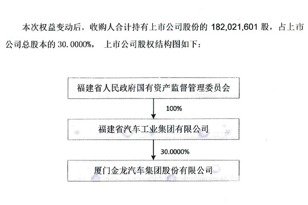 此外,《报告书》显示,在持有金龙汽车30%总股份之后,收购人(福汽集团)拟在2019年11月28日前,通过上海交易所二级市场集中竞价交易进一步增持公司股份,增持后的持股比例不超过已发行股份的31.99%。