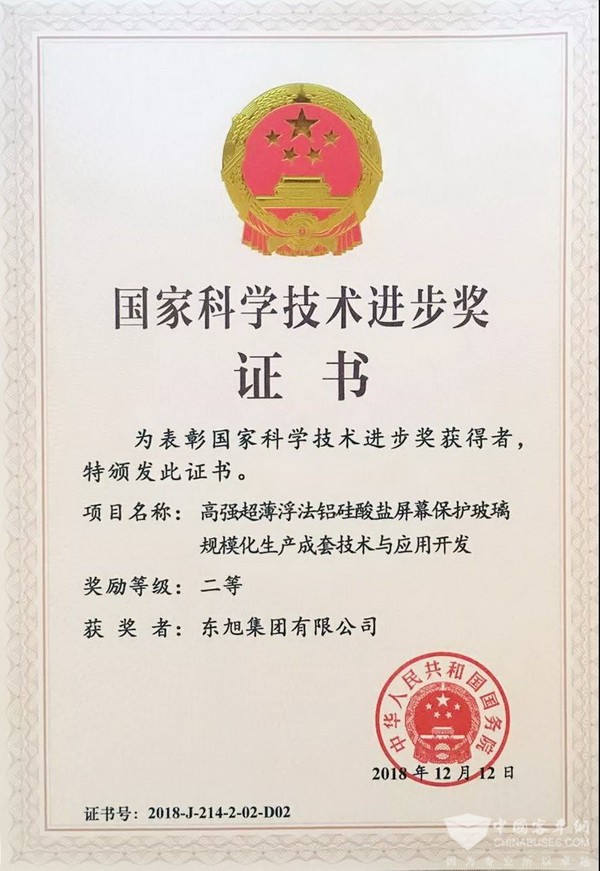 此次“2018年度国家科学技术奖”共评选出278个项目,其中“国家科技进步奖”173项,特等奖2项,一等奖23项(创新奖3项、通用项目11项),二等奖148项。在此次大会上,东旭集团牵头石家庄旭新光电等单位完成的“光电显示用高均匀超净面玻璃基板关键技术与设备开发及产业化”项目荣获国家科学技术进步奖一等奖;东旭集团牵头四川旭虹光电等单位完成的“高强超薄浮法铝硅酸盐屏幕保护玻璃规模化生产成套技术与应用开发”项目荣获国家科学技术进步奖二等奖。