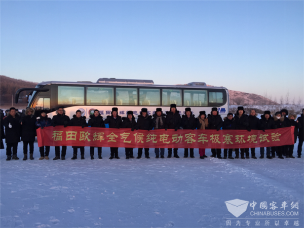 2019年1月16日,福田欧辉全气候纯电动客车极寒环境试验在中汽中心呼伦贝尔冬季汽车试验场取得了突破。北京市科学技术委员会党组成员、副主任张光连,中国工程院院士、电动车辆国家工程实验室主任孙逢春,美国宾州州立大学王朝阳教授和福田汽车欧辉客车事业部研发副总裁秦志东,及科研专家、技术研发团队等共同参与了本次试验。