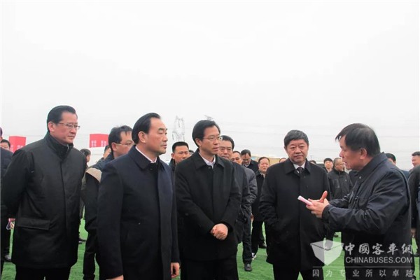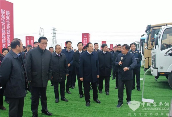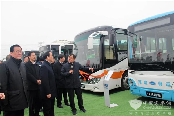 黄宏生董事长向周书记、庄市长等领导介绍开沃集团新能源展车