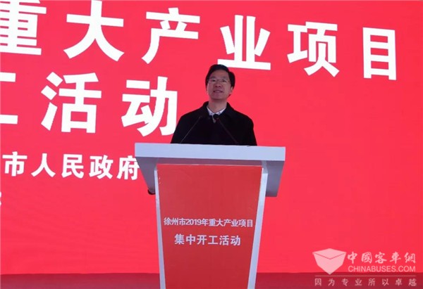徐州市委副书记、市长庄兆林指出:“今天参加集中开工的产业项目共228个,总投资1756.4亿元,年度计划投资868.6亿元,涵盖了工业、现代服务业、平台载体等多个领域。各级部门将全力以赴为项目建设和企业发展提供最优质、最便捷的服务,不断开创互利互惠、合作共赢的良好局面。希望各项目单位要进一步强化效率意识和质量意识,科学调度、加快进度,力争项目早竣工、早达产、早见效益。”