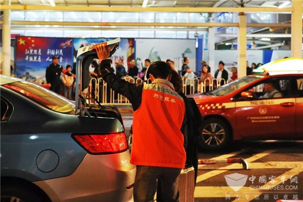 春运期间,广州公交利用交通大数据分析,通过驻点保障、实时监控、智能调度的方式,共定向调度出租汽车26700车次,百分百确保白云国际机场运力充足。在节后返程高峰时期,广州公交在每晚20点至次日凌晨两点安排了约1200辆次出租汽车,保障白云国际机场乘客夜间出行。