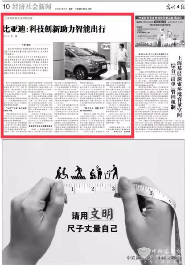 光明日报专刊【支持民营企业转型升级】,开栏之作报道《比亚迪:科技创新助力智能出行》