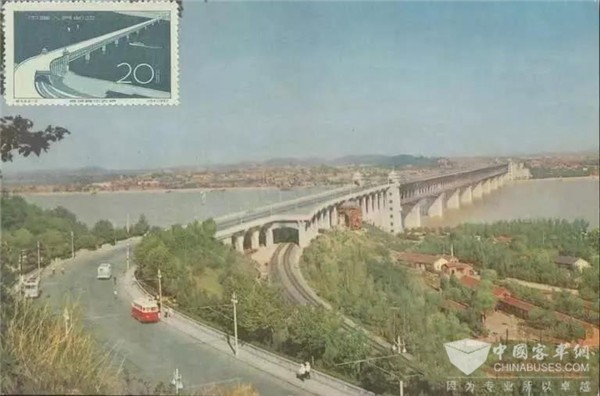 上世纪 60 年代发行的邮票和明信片以长江大桥及电车线网作背景